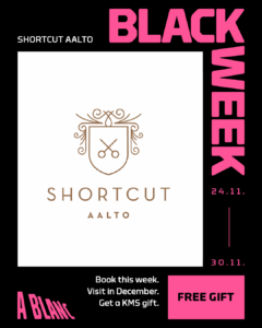 Ostoskeskus A Blancista mukana kampanjaviikossa on Shortcut Aalto, joka tarjoaa ilmaisen tuotelahjan tarjousviikon aikana tehtyihin joulukuun varauksiin!